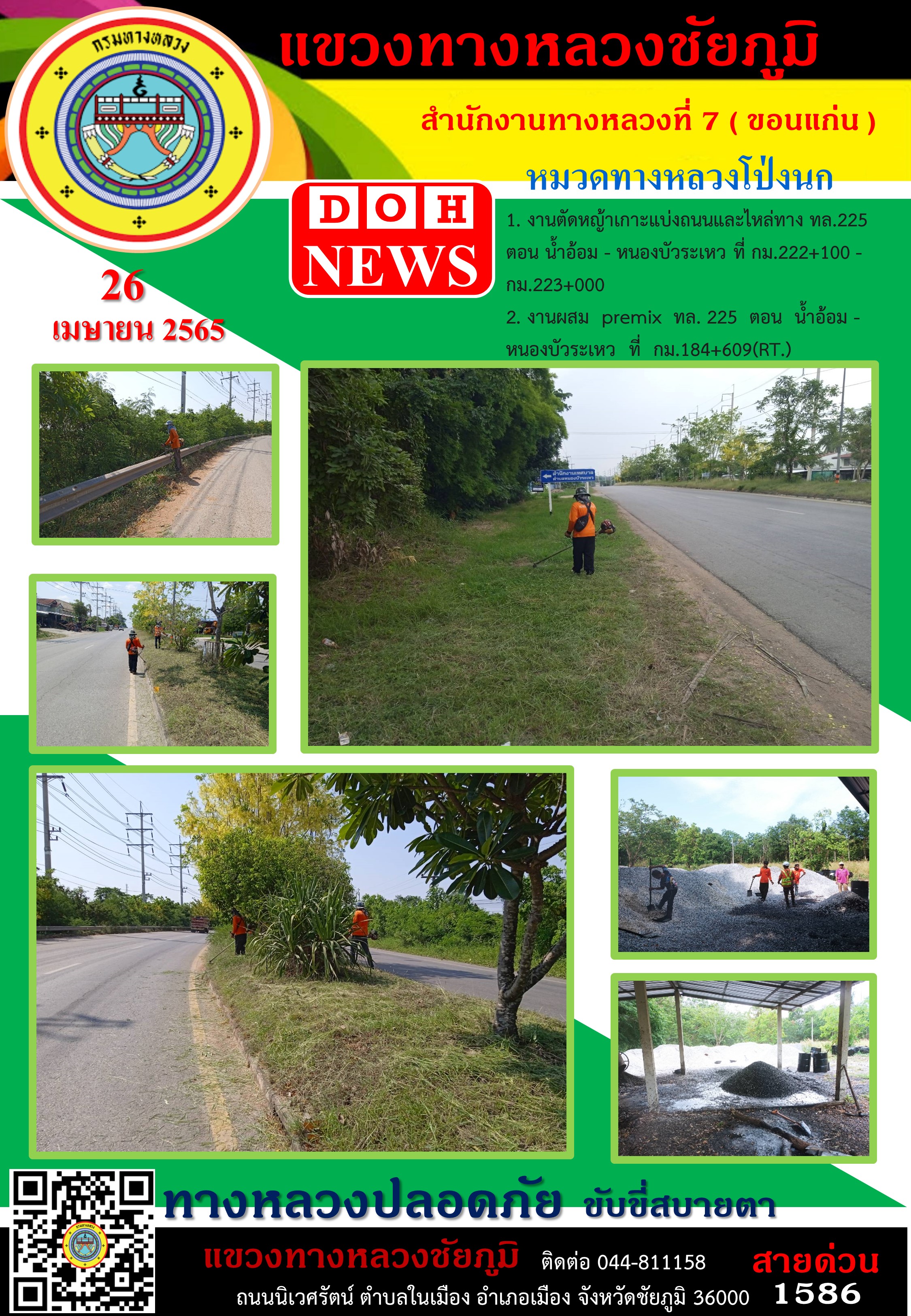 ข้อมูลภาพกิจกรรม : ทางหลวงปลอดภัย ขับขี่สบายตา ประจำวันที่ 26 เม.ย. 2565