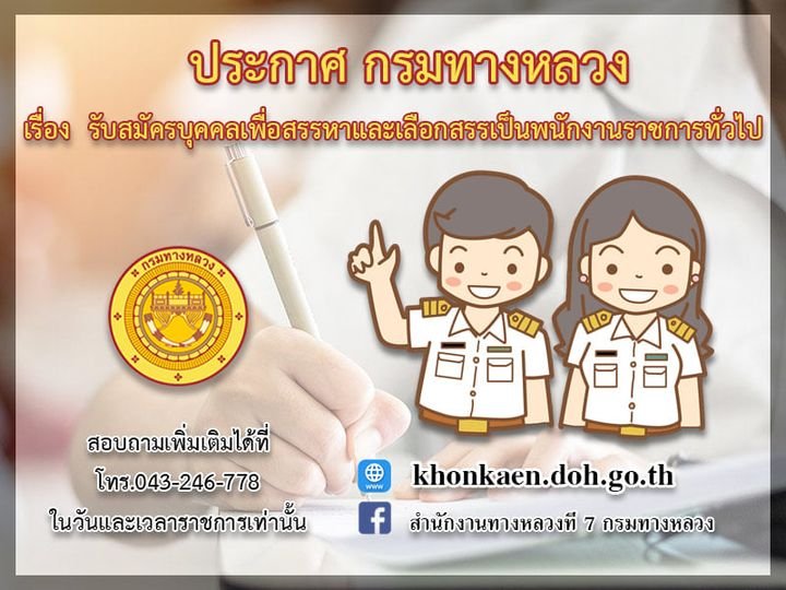 ด้วย กรมทางหลวง ประสงค์จะรับสมัครบุคคลเพื่อจัดจ้างเป็นพนักงานราชการทั่วไป ในสังกัดสำนักงานทางหลวงที่ 7