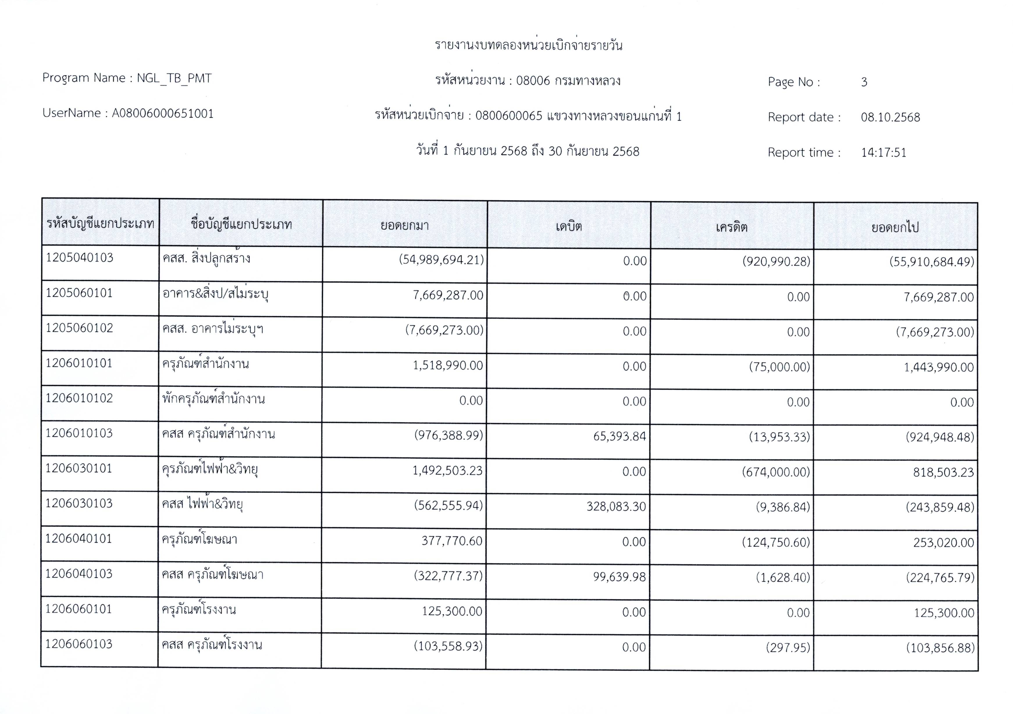 งบทดลองประจำเดือนกันยายน 2568