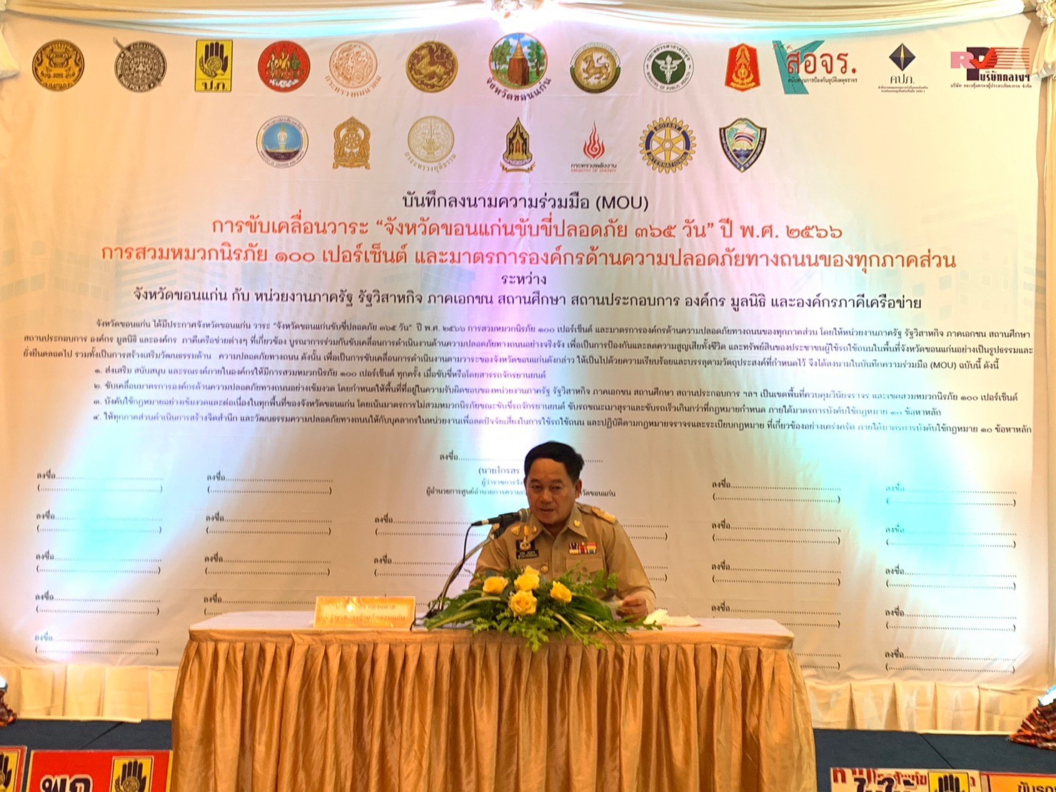 การขับเคลื่อนวาระ "จังหวัดขอนแก่นขับขี่ปลอดภัย 365 วัน" ปี พ.ศ. 2566 การสวมหมวกนิรภัย 100 เปอร์เซ็นต์ และมาตรการองค์กร ด้านความปลอดภัยทางถนนของทุกภาคส่วน โดย คณะกรรมการศูนย์อำนวยความปลอดภัยทางถนนจังหวัดขอนแก่น