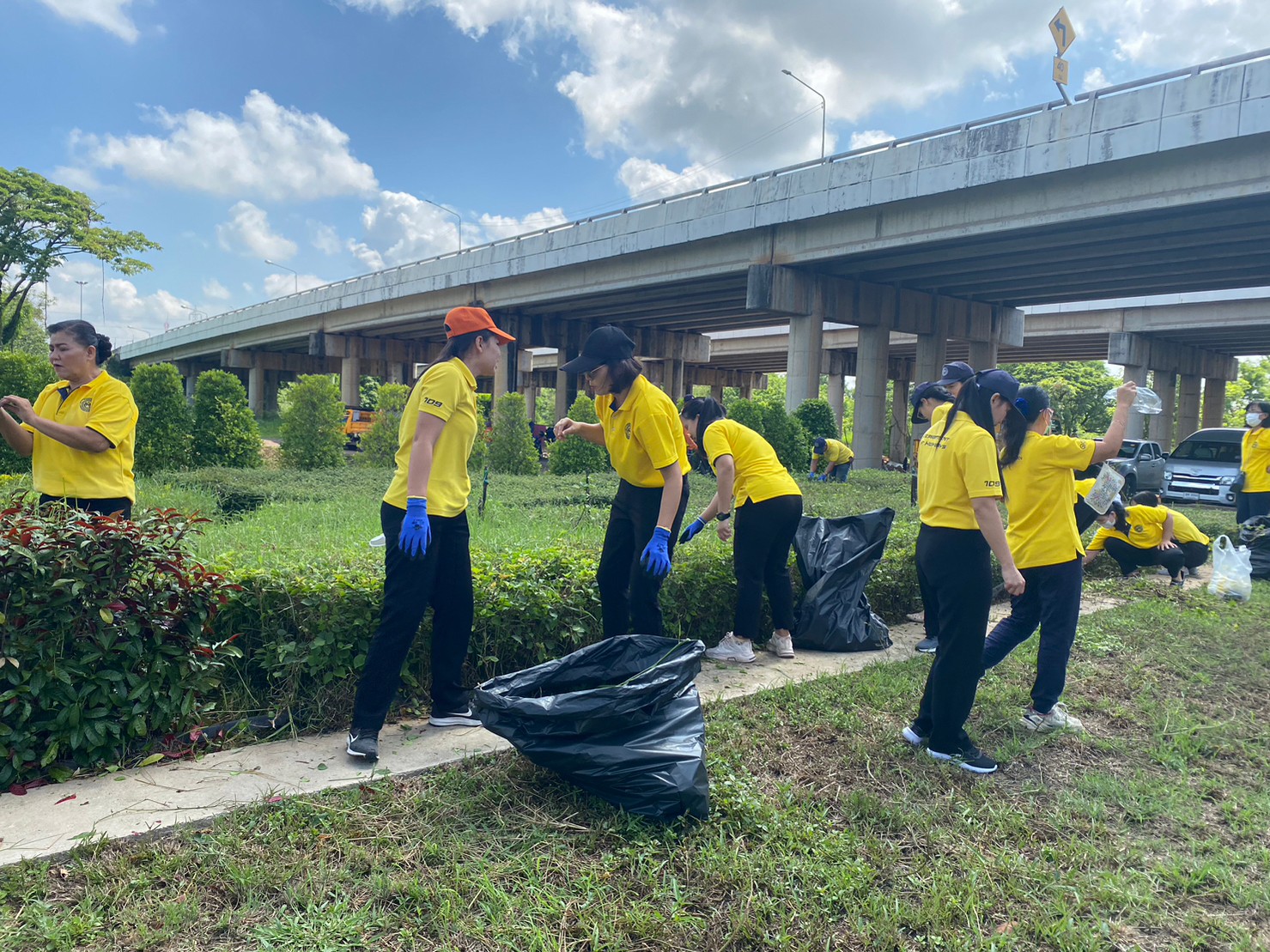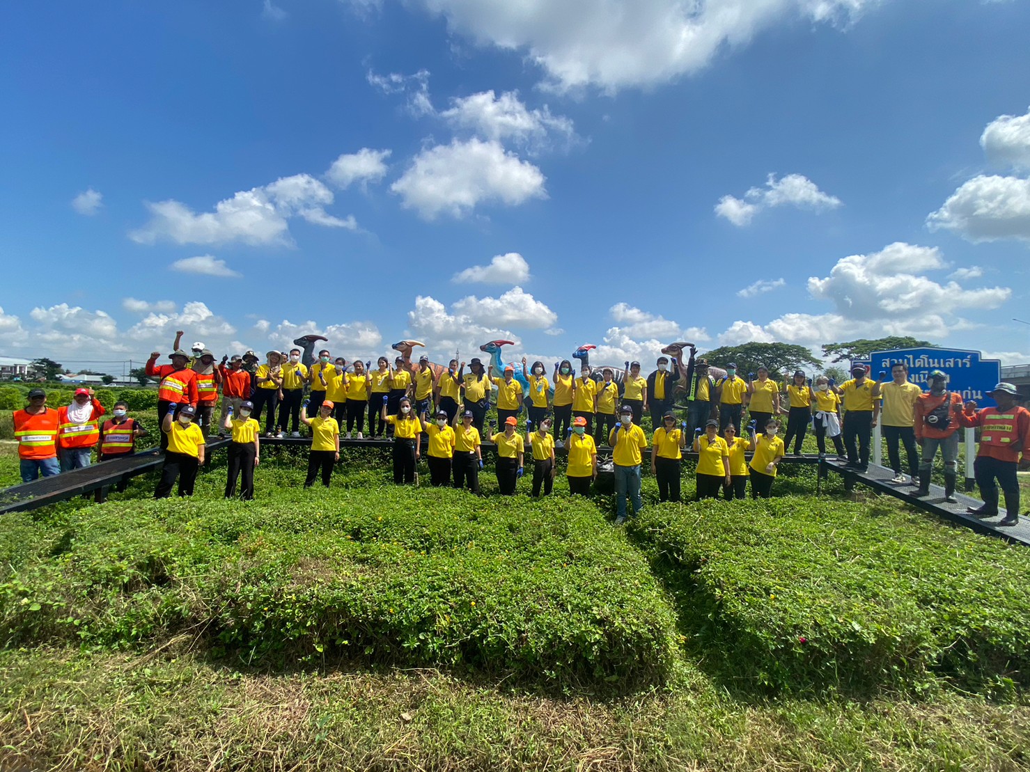 นายสิโรตม์ แดงภูมี ผู้อำนวยการแขวงทางหลวงขอนแก่นที่ 1 พร้อมด้วยข้าราชการ, พนักงานราชการ และเจ้าหน้าที่แขวงฯ ดำเนินโครงการพัฒนาเพื่อสังคมในโอกาสครบรอบ 111 ปี กระทรวงคมนาคม โดยร่วมกันทำความสะอาด และปรับปรุงภูมิทัศน์บริเวณโดยรอบ "สวนไดโนเสาร์บึงเนียม" ทางหลวงหมายเลข 230 ตอน ถนนวงแหวนรอบเมืองขอนแก่นด้านทิศตะวันออก ที่ กม.34+351