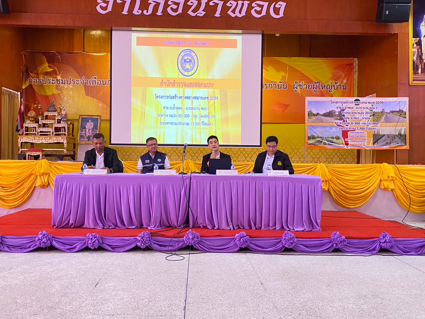 แขวงทางหลวงขอนแก่นที่ 1 ได้จัดการประชุมโครงการก่อสร้างทางหลวงหมายเลข 2039 สาย อ.น้ำพอง - อ.กระนวน (ตอน 1) ระหว่าง กม.0+500 - กม.14+000 โดยมีนายเอนก สุวรรณภูเต ผู้อำนวยการแขวงทางหลวงขอนแก่นที่ 1 ,นายมังกร กัลยา รองผู้อำนวยการแขวงทางหลวงขอนแก่นที่ 1 ฝ่ายปฏิบัติการ,นายนพดล นุ่มน้อย วิศวกรโยธาชำนาญการพิเศษ,นายจักรกฤษณ์ สิทธิเสือ วิศวกรโยธาชำนาญการพิเศษ,นายวีรชัย ตั้งวัฒนากร วิศวกรโยธาชำนาญการ และนายณัฐวุฒิ จันทร์ปุ่ม หัวหน้าหมวดทางหลวงกระนวนร่วมให้ข้อมูลและตอบข้อซักถามให้แก่ประชาชนที่เข้าร่วมโครงการดังกล่าว พร้อมทั้งมีนายเอกราช ช่างเหลา ส.ส.ขอนแก่น เขต 4,นายชัชวาล อภิรักษ์มั่นคง ส.ส.ขอนแก่น เขต 3 , นายจตุพร เจริญเชื้อ อดีต ส.ส.ขอนแก่น เขต 4 และตัวแทนจากหน่วยงานราชการ ผู้นำท้องถิ่น ประชาชน ในพื้นที่ เข้าร่วมประชุม โดยมีนายกรชวาลวิชญ์ ชัยพีรวัส นายอำเภอน้ำพอง เป็นประธานเปิดการประชุม โครงการฯ ณ ที่ว่าการอำเภอน้ำพอง อ.น้ำพอง จ.ขอนแก่น