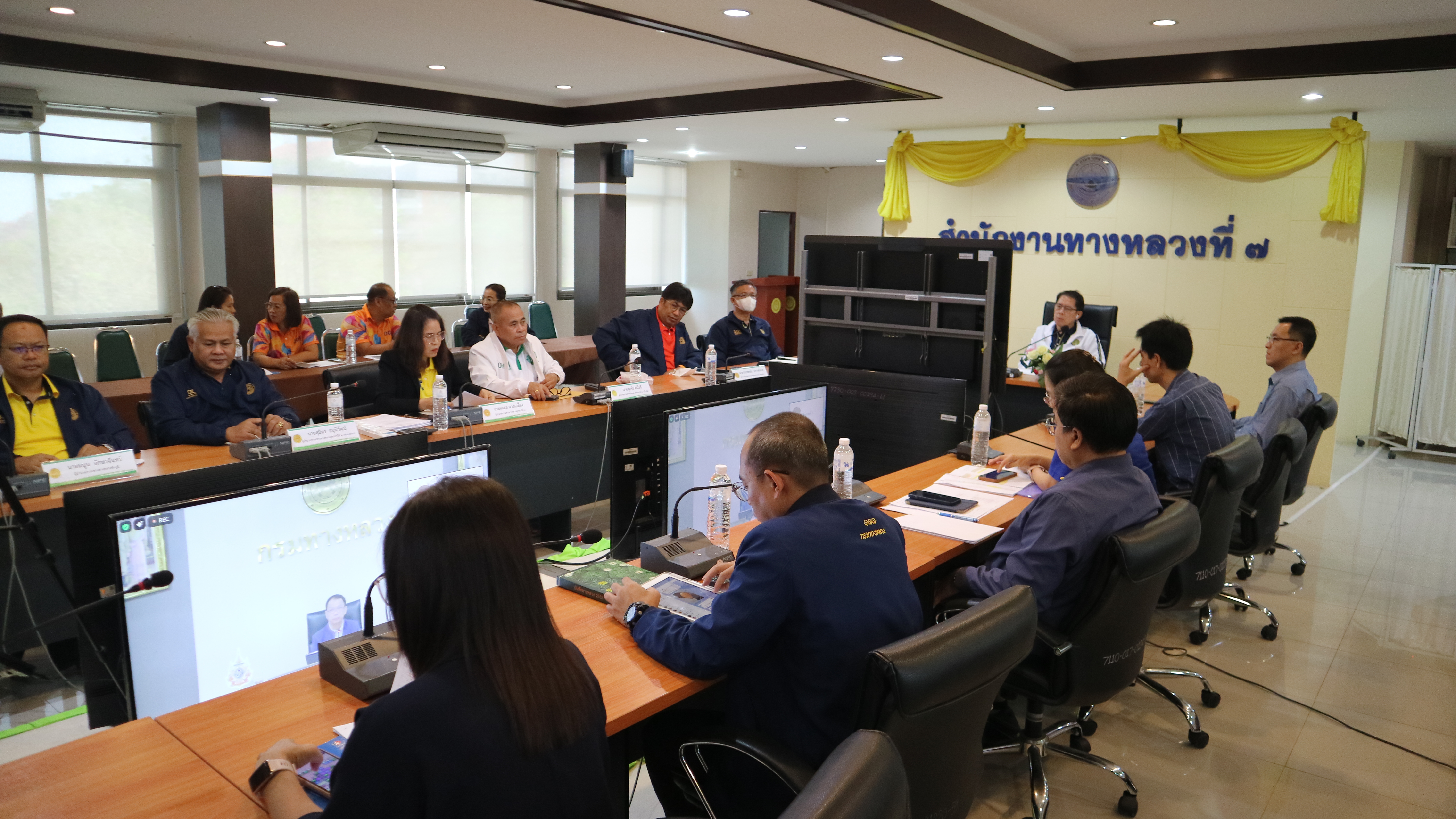 นายอำนวยพร ศรีอิสรานุสรณ์ ผู้อำนวยการสำนักงานทางหลวงที่ 7 (ขอนแก่น) พร้อมด้วย นายเอนก สุวรรณภูเต ผู้อำนวยการแขวงทางหลวงขอนแก่นที่ 1, ผู้อำนวยการแขวงทางหลวงในพื้นที่ และเจ้าหน้าที่ที่เกี่ยวข้องได้เข้าร่วมการประชุมผู้บริหารกรมทางหลวง ประจำเดือนมีนาคม ครั้งที่ 3/2568 โดยมี นายอภิรัฐ ไชยวงศ์น้อย อธิบดีกรมทางหลวง เป็นประธานในการประชุมฯ ผ่านระบบ Zoom Cloud Meeting ห้องประชุมมนัส ณ ห้องประชุมสำนักงานทางหลวงที่ 7 ชั้น 3