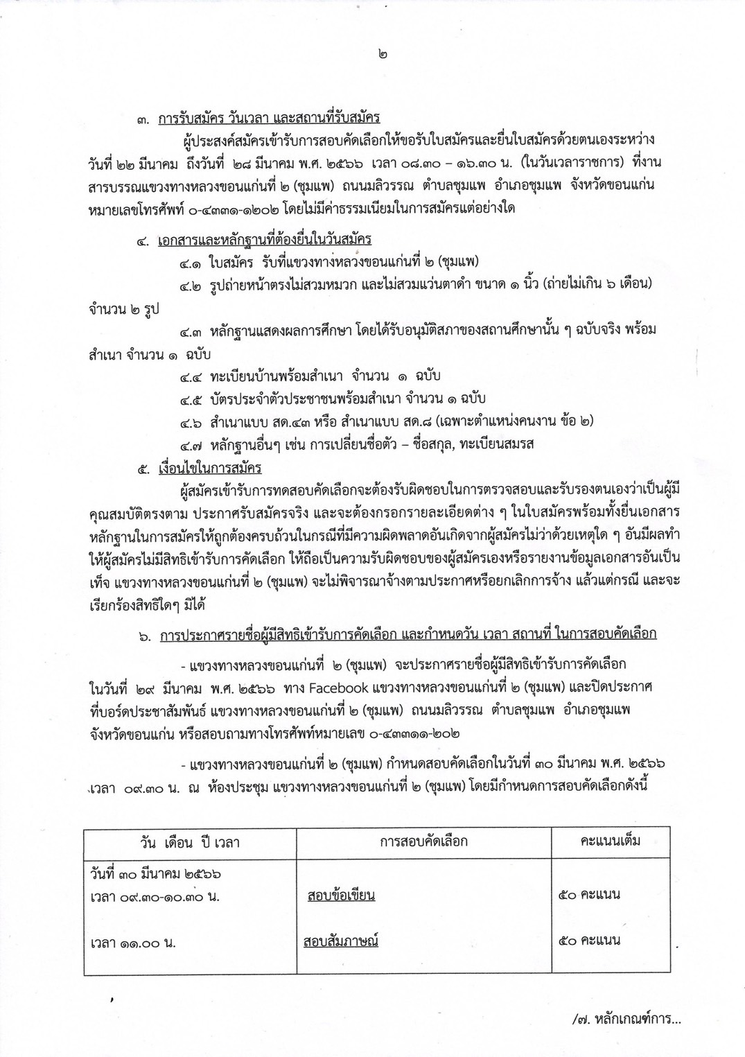 ผู้ประสงค์สมัครเข้ารับการสอบคัดเลือกให้ขอรับใบสมัครและยื่นใบสมัครด้วยตนเองระหว่าง วันที่ 22 มีนาคม ถึงวันที่ 28 มีนาคม 2566 (ในวันเวลาราชการ)