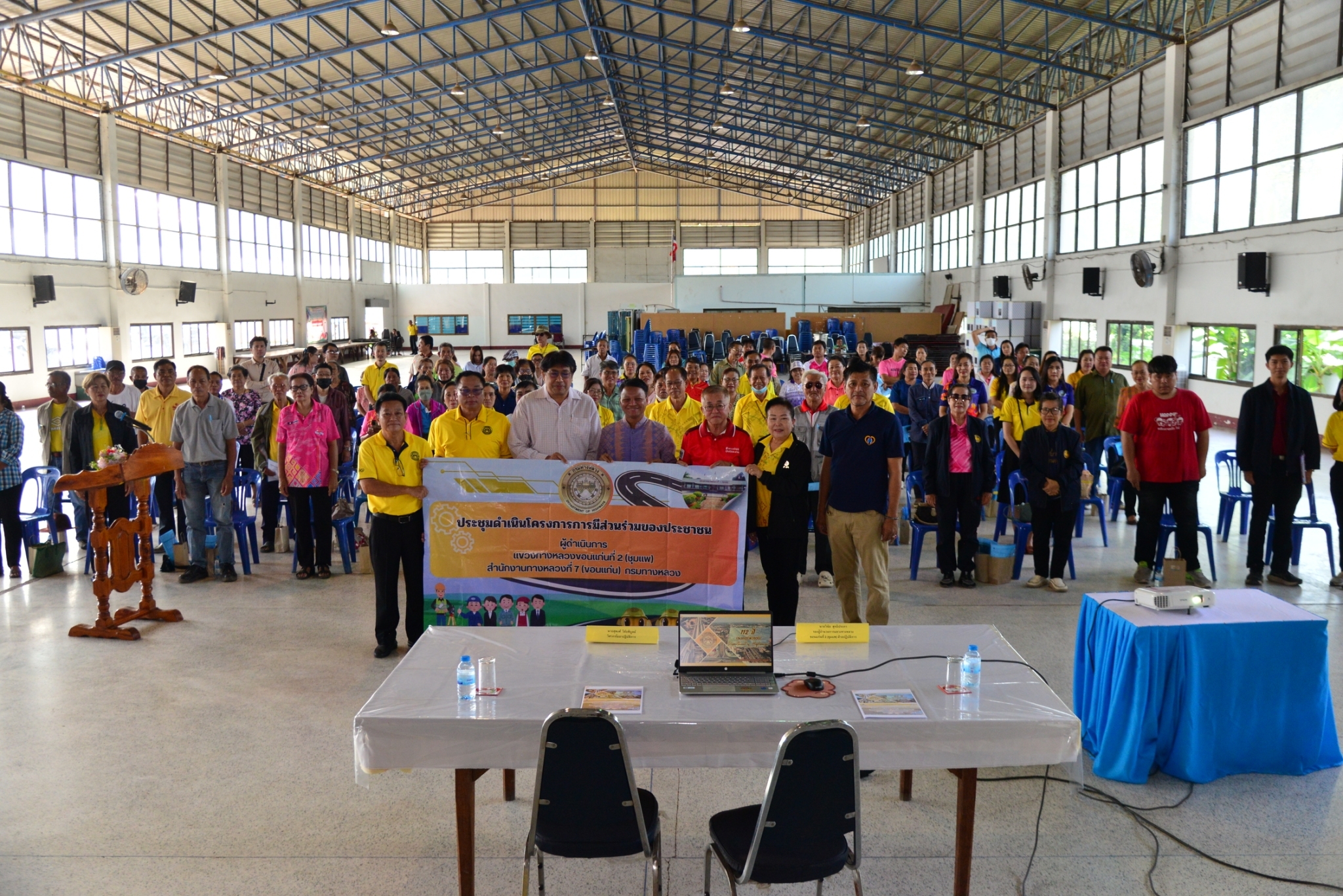 วันที่ 26  พฤศจิกายน 2567 นายประสพชัย ปรางค์ทอง ผู้อำนวยการแขวงทางหลวงขอนแก่นที่ 2 (ชุมแพ) และเจ้าหน้าที่แขวงทางหลวงขอนแก่นที่ 2 (ชุมแพ) ได้ประชุมดำเนินโครงการมีส่วนร่วมของประชาชน ประจำปีงบประมาณ 2568 ร่วมกับหน่วยงานที่เกี่ยวข้องทั้งภาครัฐ ผู้นำท้องถิ่น ผู้นำชุมชน และประชาชนในพื้นที่โครงการ “โครงการก่อสร้างโครงข่ายทางหลวงแผ่นดิน กิจกรรมก่อสร้างเพิ่มประสิทธิภาพทางหลวง งานก่อสร้างทางขนาน ทล. 12 ตอน หนองแก - บ้านฝาง กม.509+600-กม.510+700“ นายวินัย สุทธิประภา รองผู้อำนวยการแขวงทางหลวงฝ่ายปฏิบัติการ และนายสุพงศ์ วิชัยพิบูลย์ วิศวกรโยธาปฏิบัติการ เป็นวิทยากรนำเสนอรายละเอียดรูปแบบของโครงการ ตลอดจนเปิดโอกาสให้ประชาชนได้ร่วมแสดงความคิดเห็น ข้อเสนอแนะต่างๆ อันจะเป็นประโยชน์ต่อการดำเนินโครงการ ซึ่งในที่ประชุมมีมติเห็นด้วยกับโครงการก่อสร้างดังกล่าว