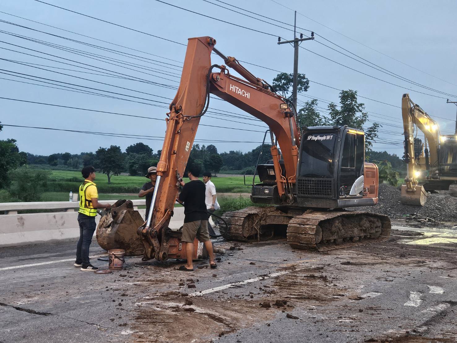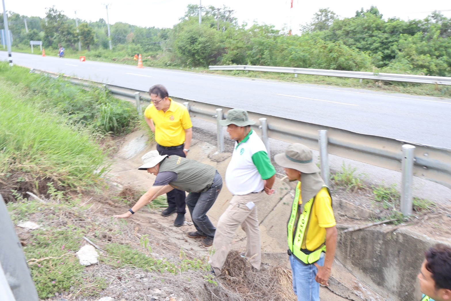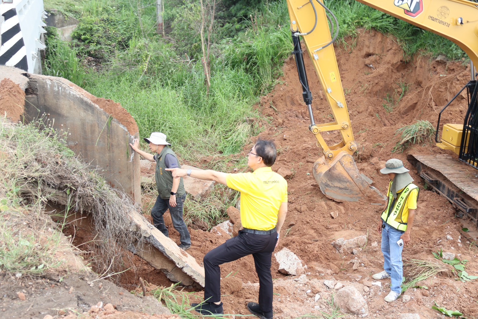 #นายอำนวยพร ศรีอิสรานุสรณ์ ผู้อำนวยการสำนักงานทางหลวงที่ 7 พร้อมด้วย นายสมเจตน์ เขื่อนเพชร ผู้อำนวยการแขวงทางหลวงขอนแก่นที่ 3 (บ้านไผ่) นายพงศ์ยุทธ หินเธาว์ รองผู้อำนวยการ (ฝ่ายวิศวกรรม) นายลือชัน วิจารวงษ์ หัวหน้าหมวดทางหลวงบ้านแฮด และเจ้าหน้าที่ผู้เกี่ยวข้อง ลงพื้นที่ตรวจสอบความเสียหายคอสะพานชำรุด และเร่งดำเนินการซ่อมแซมสะพานทรุดตัวจากการใช้งานและเกิดเหตุซ้ำจากเหตุการณ์ฝนตกหนักต่อเนื่อง ทางหลวงหมายเลข 2 (ถนนมิตรภาพ) ตอน บ้านไผ่ - ท่าพระ ที่ กม.317+350 (ด้านขวาทาง) เพื่อให้ประชาชนสามารถสัญจรได้อย่างปลอดภัยและสะดวกขึ้น โดยทีมงานวิศวกรและเจ้าหน้าที่ที่เกี่ยวข้อง ได้ร่วมกันเร่งดำเนินการซ่อมแซมอย่างเต็มที่ พร้อมทั้งติดตั้งป้ายเตือนและจัดการจราจรเพื่ออำนวยความสะดวกแก่ผู้ใช้เส้นทาง และป้องกันอุบัติเหตุที่อาจเกิดขึ้นในระหว่างการซ่อมแซม นอกจากนี้ยังมีการตรวจสอบและบำรุงรักษาสะพานอื่น ๆ ในพื้นที่ใกล้เคียงเพื่อป้องกันเหตุการณ์เช่นนี้เกิดขึ้นอีกในอนาคต