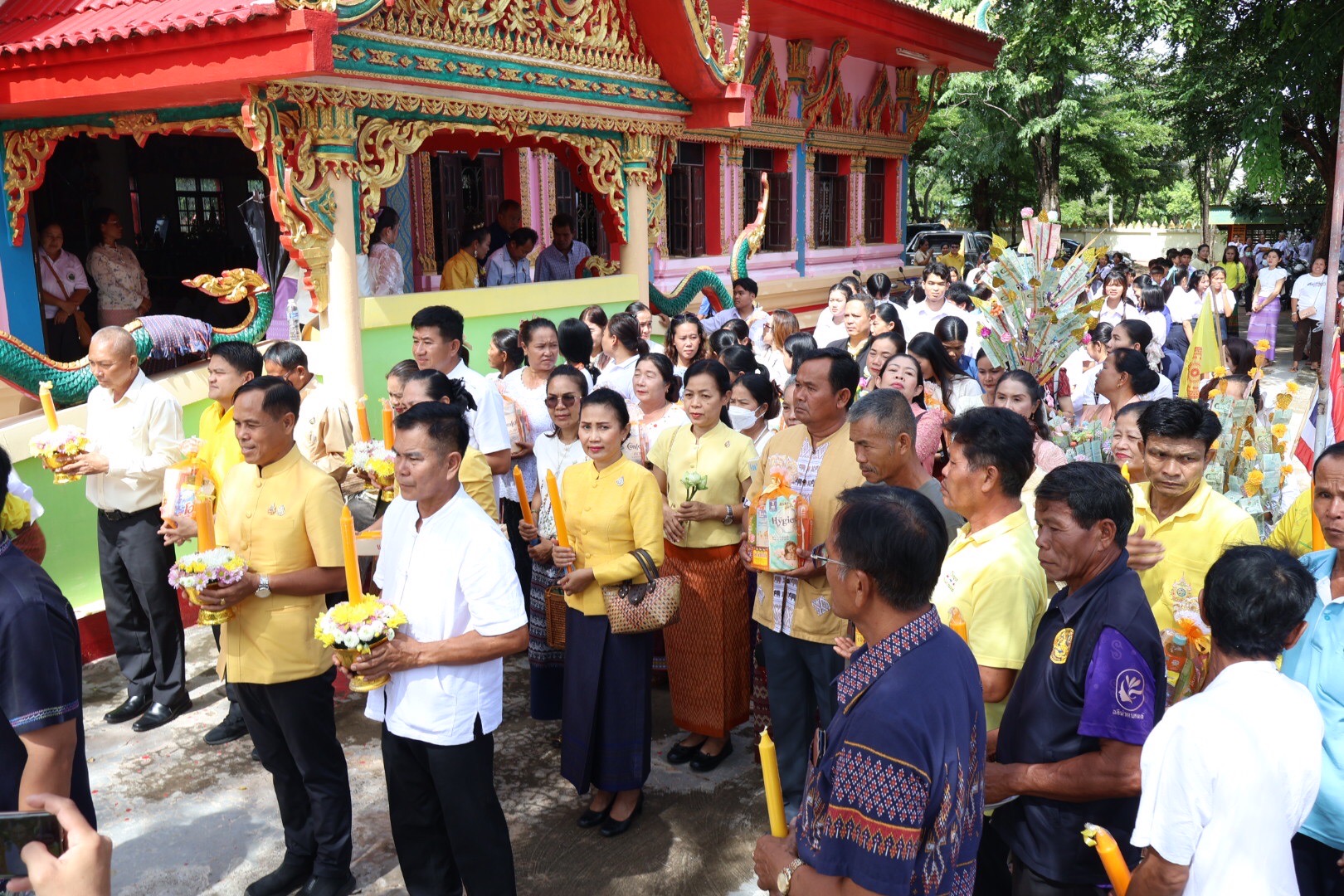 นายสมเจตน์ เขื่อนเพชร ผู้อำนวยการแขวงทางหลวงขอนแก่นที่ 3 (บ้านไผ่) มอบหมายให้ นางพรศรี ไชยนนท์ เจ้าพนักงานธุรการชำนาญงาน นางสาวฐิตาภรณ์ เหล่าภักดี เจ้าพนักงานการเงินและบัญชี พร้อมด้วยข้าราชการและเจ้าหน้าที่ในสังกัดแขวงทางหลวงขอนแก่นที่ 3 (บ้านไผ่) เข้าร่วมกิจกรรมโครงการเข้าวัดทำบุญ ในห้วงเทศกาลเข้าพรรษา ประจำปี 2567 เพื่อส่งเสริมให้ข้าราชการและเจ้าหน้าที่มีส่วนร่วมในกิจกรรมทางศาสนาและเสริมสร้างความสามัคคีในหน่วยงาน กิจกรรมนี้จัดขึ้น ณ วัดสว่างเวหา บ้านกุดเชือก ตำบลบ้านลาน อำเภอบ้านไผ่ จังหวัดขอนแก่น โดยมี นายกองโท พิชัย วันตา นายอำเภอบ้านไผ่ เป็นประธานในพิธี