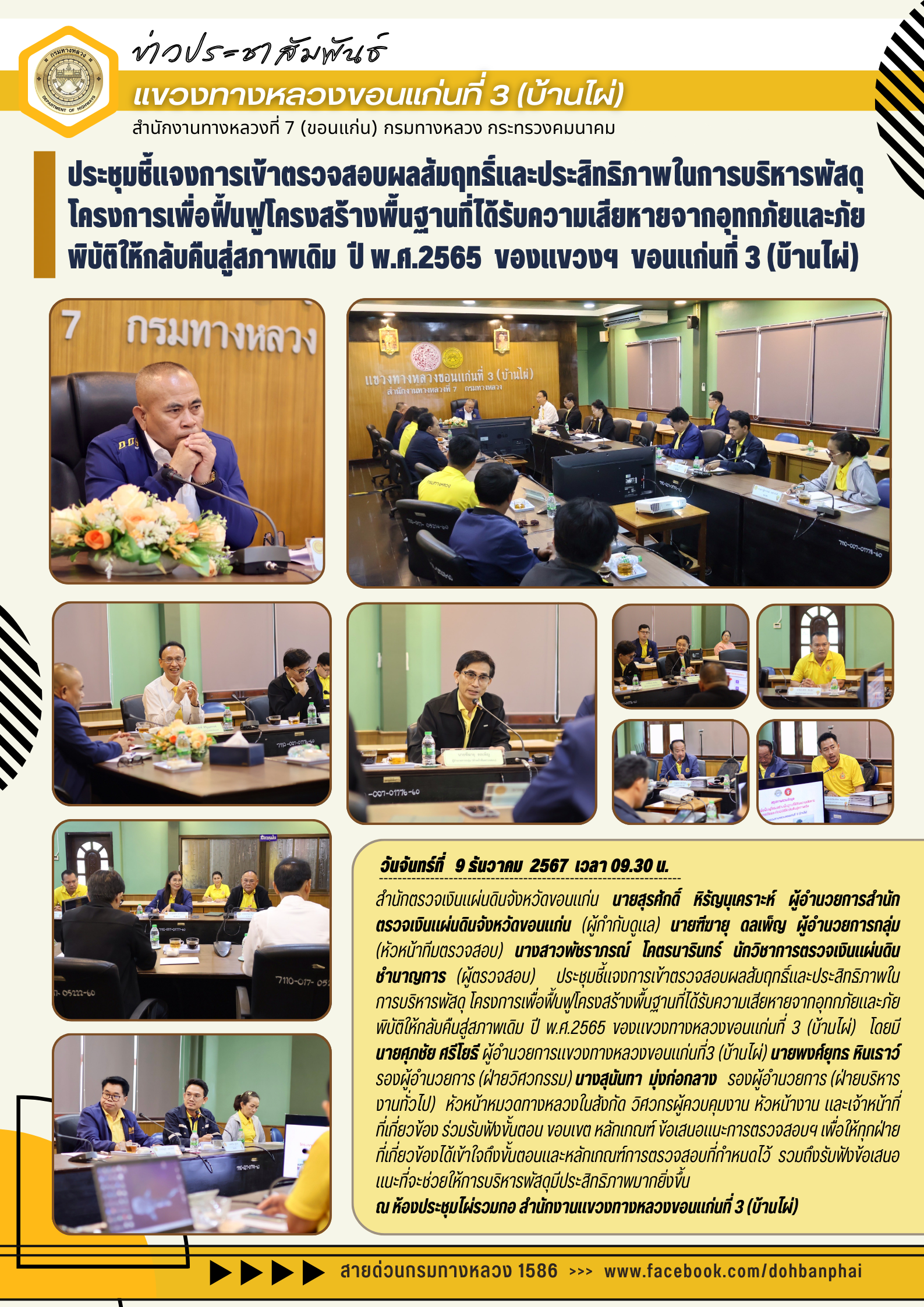 #ประชุมชี้แจงการเข้าตรวจสอบผลสัมฤทธิ์และประสิทธิภาพในการบริหารพัสดุโครงการเพื่อฟื้นฟูโครงสร้างพื้นฐานที่ได้รับความเสียหายจากอุทกภัยและภัยพิบัติให้กลับคืนสู่สภาพเดิม ปี พ.ศ.2565 ของแขวงทางหลวง ขอนแก่นที่ 3 (บ้านไผ่)