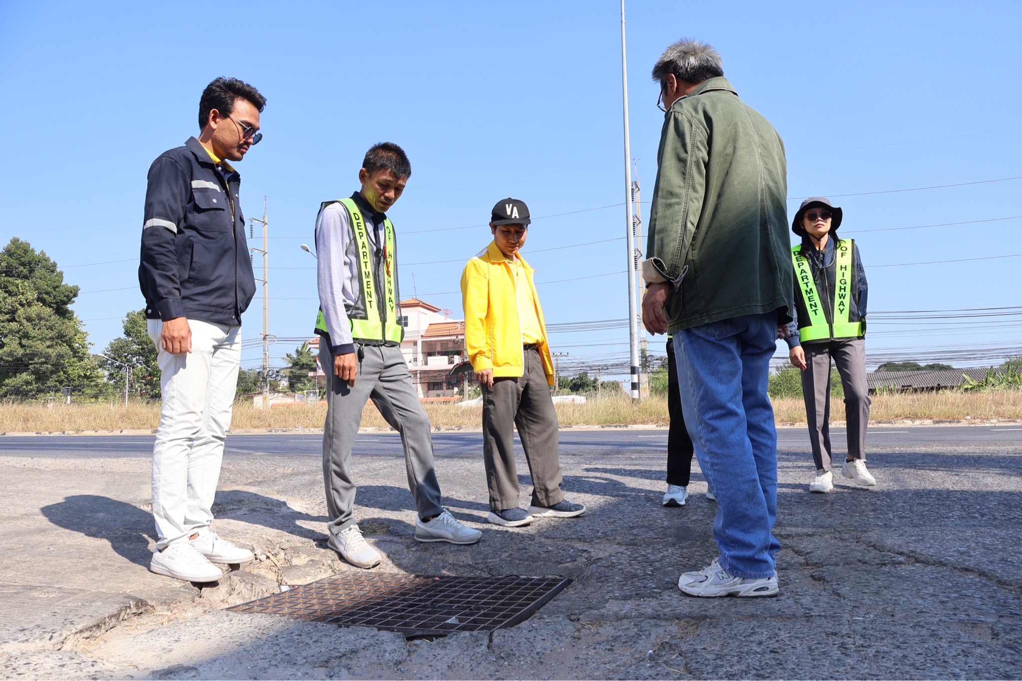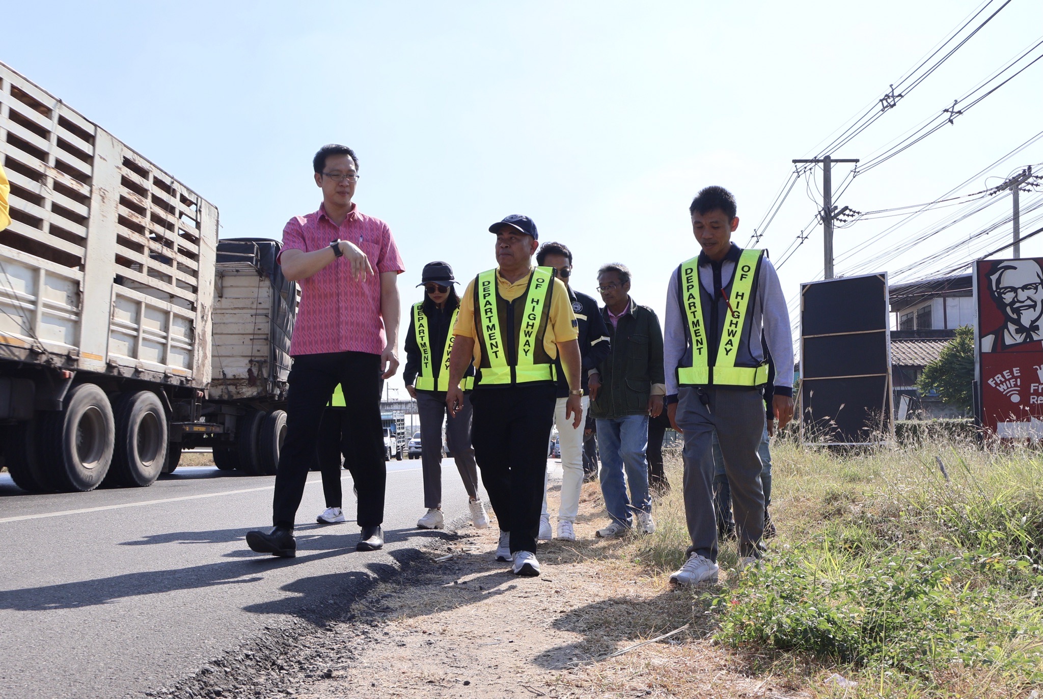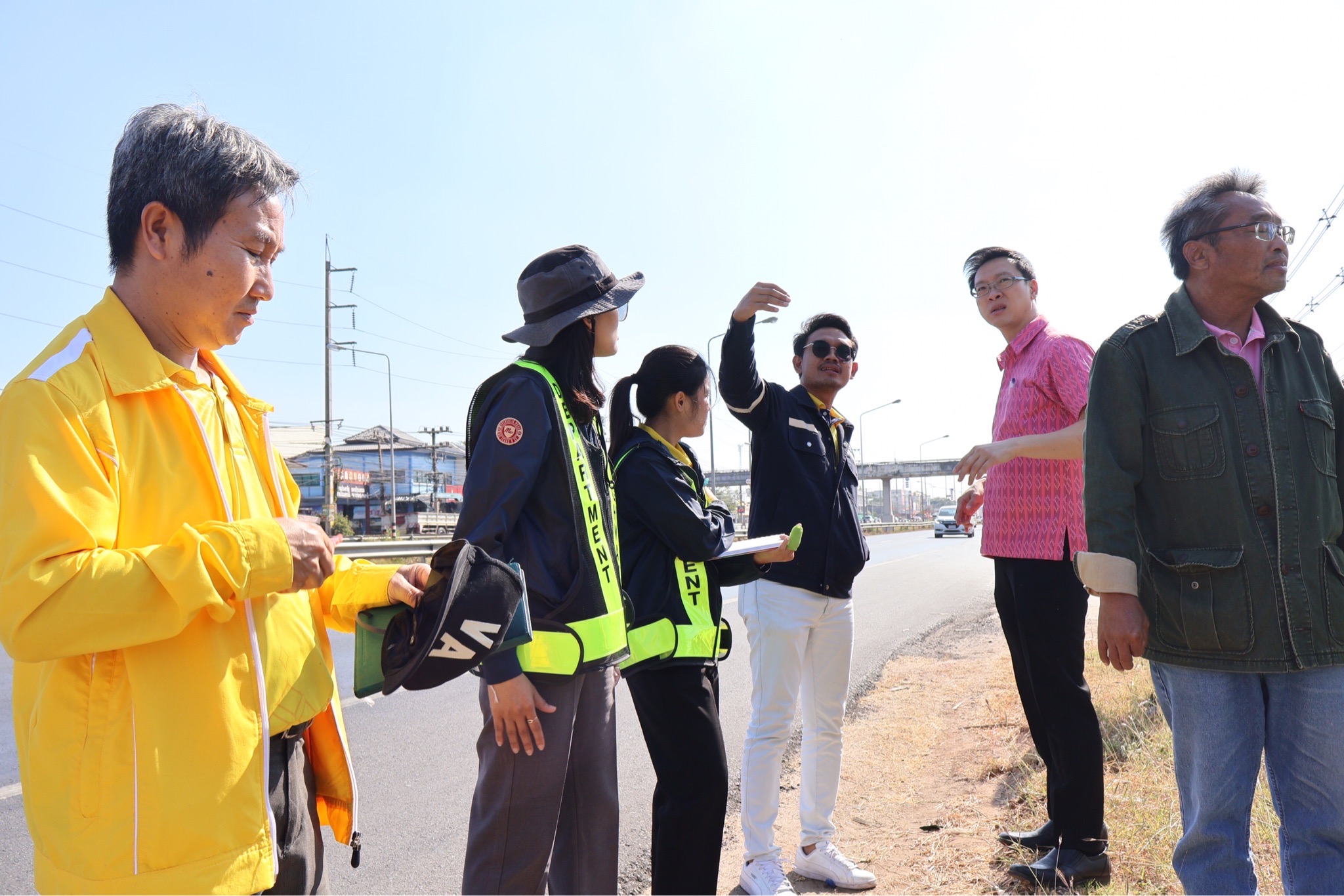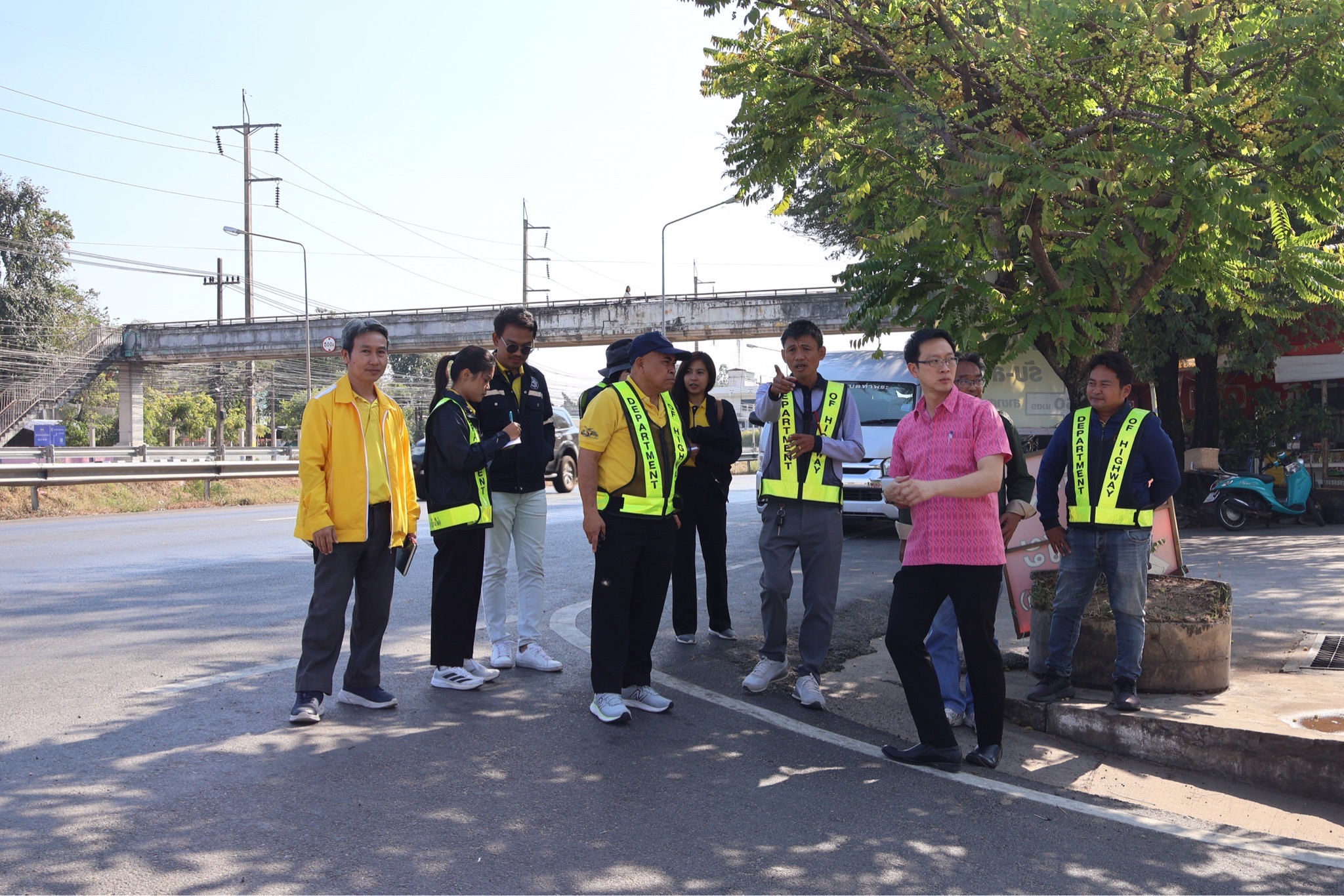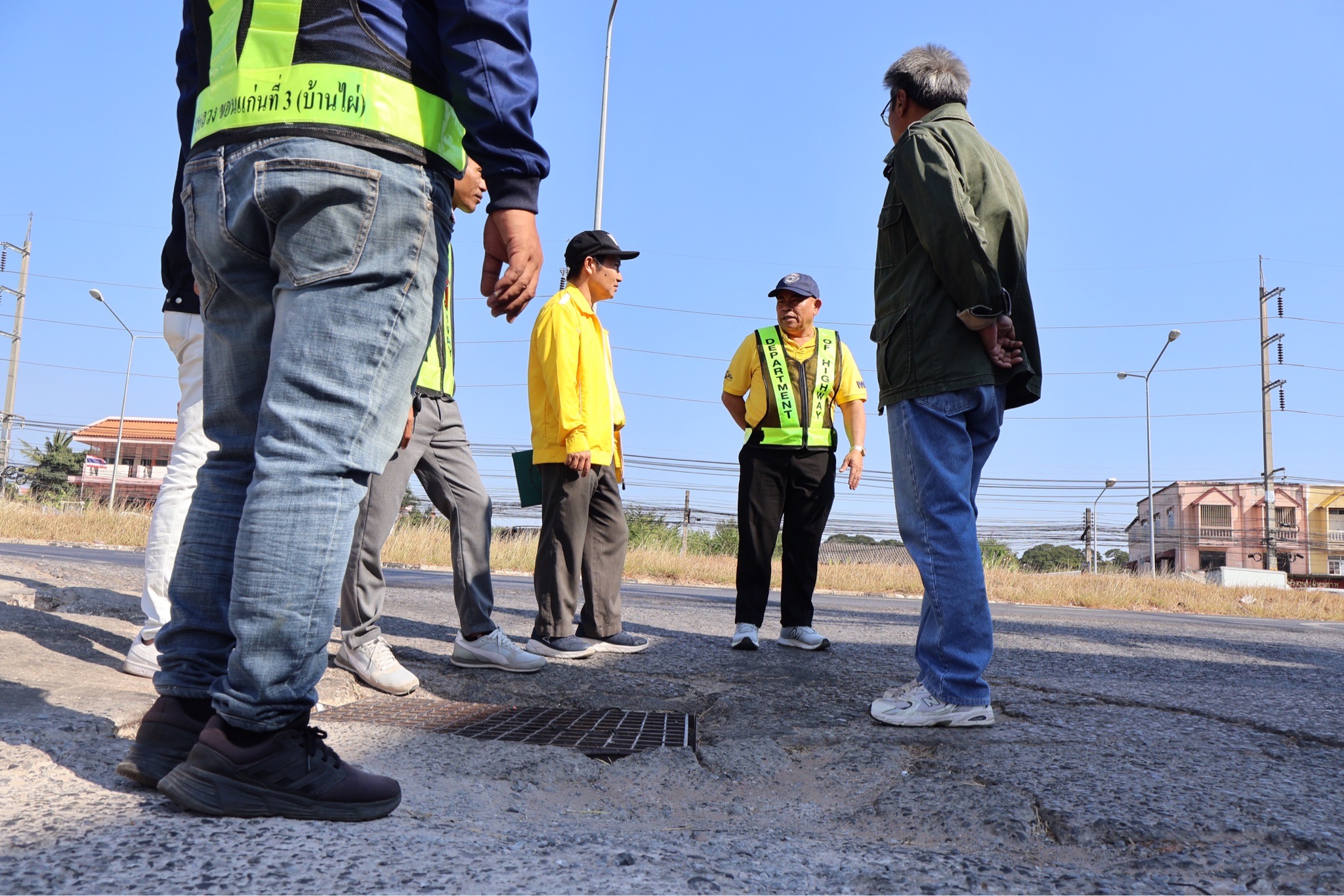 #นายศุภชัย ศรีึโยธี ผู้อำนวยการแขวงทางหลวงขอนแก่นที่ 3 (บ้านไผ่) นายลือชัน วิจารวงษ์ หัวหน้าหมวดทางหลวงบ้านแฮด นายสาธิต ภูผิวคำ วิศวกรโยธาปฎิบัติการ (หัวหน้างานวางแผน) พร้อมเจ้าหน้าที่ที่เกี่ยวข้อง