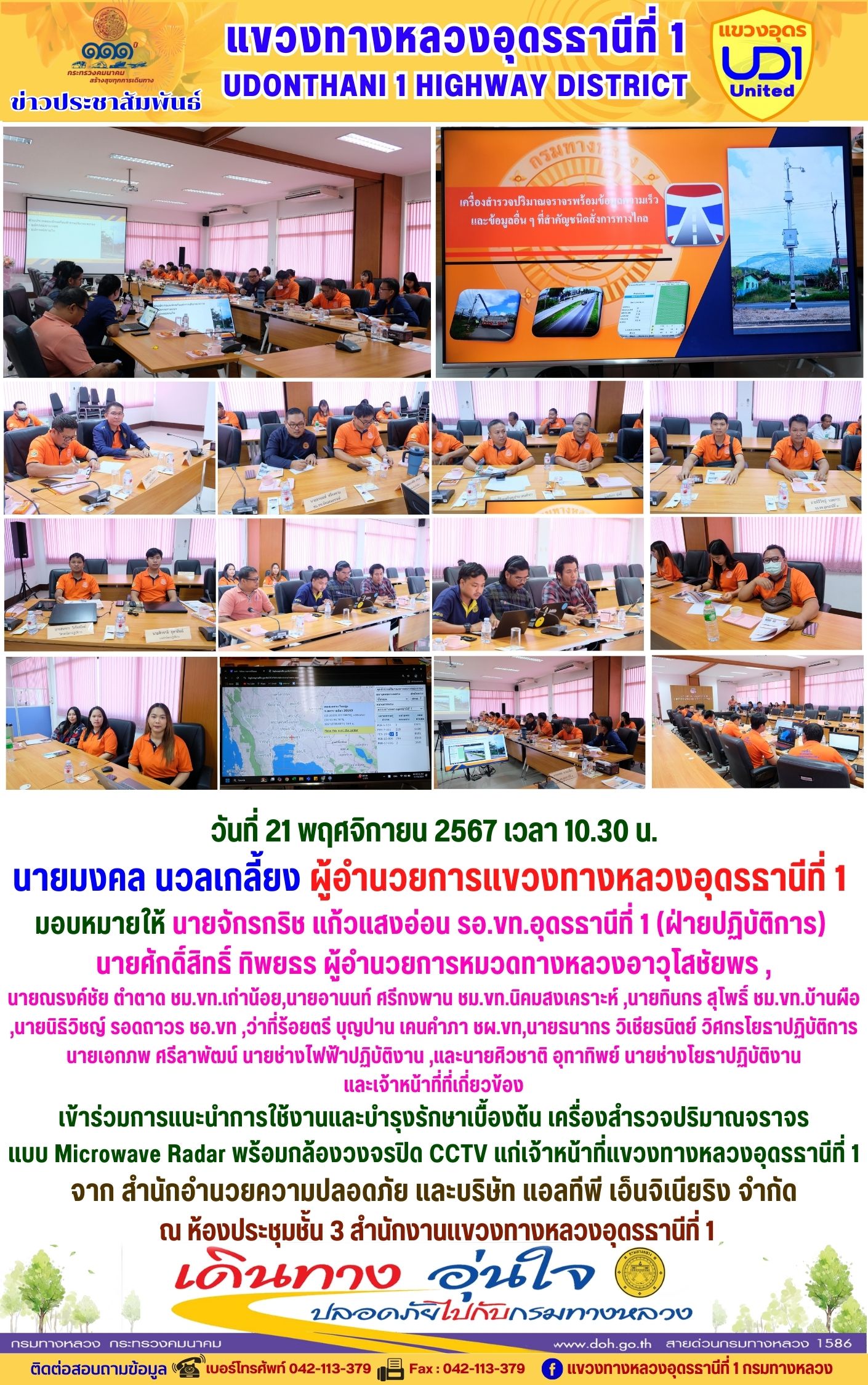 แนะนำการใช้งานและบำรุงรักษาเบื้องต้น เครื่องสำรวจปริมาณจราจร แบบ Microwave Radar พร้อมกล้องวงจรปิด CCTV แก่เจ้าหน้าที่แขวงทางหลวงอุดรธานีที่ 1