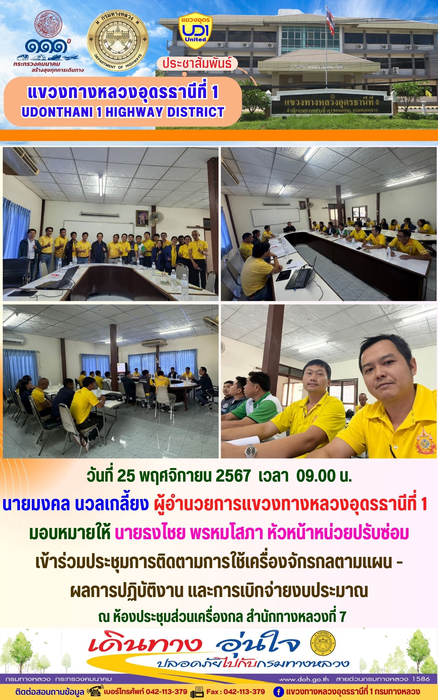 เข้าร่วมประชุมการติดตามการใช้เครื่องจักรกลตามแผน - ผลการปฏิบัติงาน และการเบิกจ่ายงบประมาณ