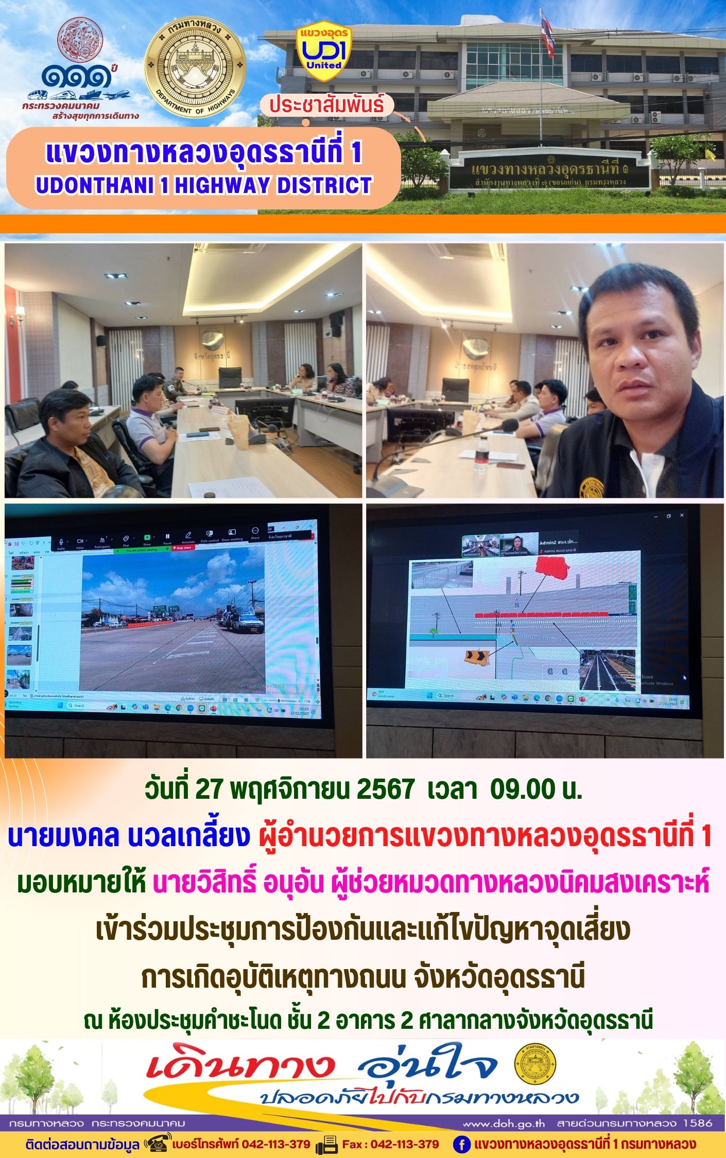 เข้าร่วมประชุมการป้องกันและแก้ไขปัญหาจุดเสี่ยง การเกิดอุบัติเหตุทางถนน จังหวัดอุดรธานี