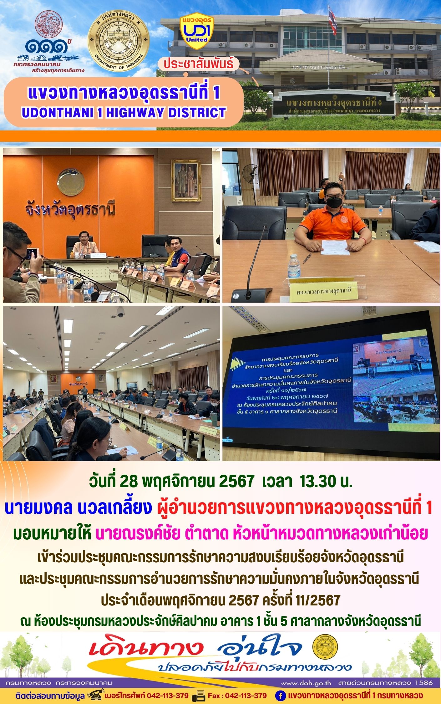 เข้าร่วมประชุมคณะกรรมการรักษาความสงบเรียบร้อยจังหวัดอุดรธานี และประชุมคณะกรรมการอำนวยการรักษาความมั่นคงภายในจังหวัดอุดรธานี ประจำเดือนพฤศจิกายน 2567 ครั้งที่ 11/2567