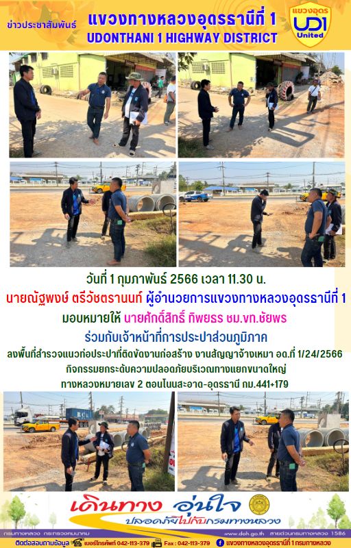 #ข่าวประชาสัมพันธ์ #กระทรวงคมนาคม #กรมทางหลวง #สำนักทางหลวงที่7 (ขอนแก่น) #แขวงทางหลวงอุดรธานีที่1 #อุดรธานี #นายณัฐพงษ์ตรีวัชตรานนท์ วันที่ 7 กุมภาพันธ์ 2566