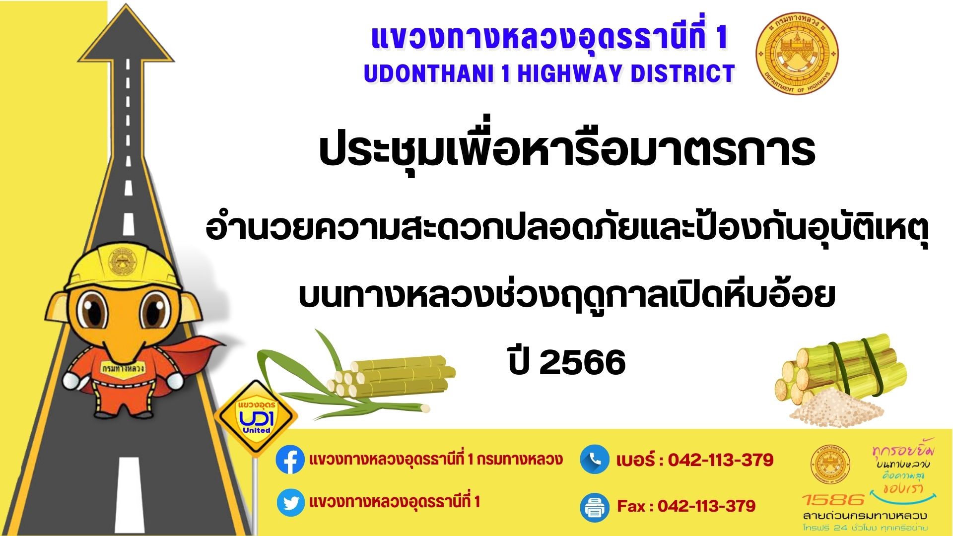 ประชุมเพื่อหารือมาตรการอำนวยความสะดวกปลอดภัยและป้องกันอุบัติเหตุบนทางหลวง ช่วงในฤดูกาลเปิดหีบอ้อย ประจำปี 2566