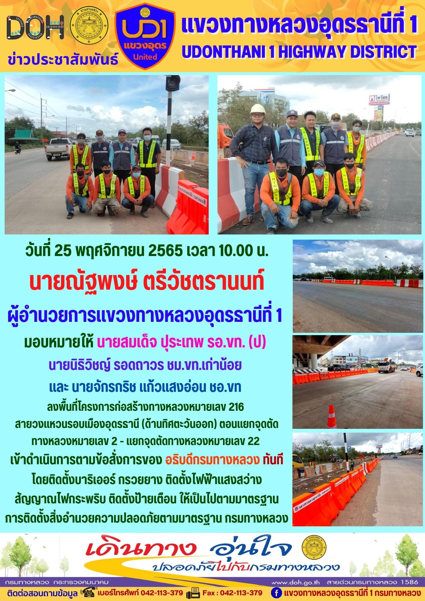 ลงพื้นที่โครงการก่อสร้างทางหลวงหมายเลข 216 สายวงแหวนรอบเมืองอุดรธานี (ด้านทิศตะวันออก) ตอนเเยกจุดตัด ทางหลวงหมายเลข 2 - แยกจุดตัดทางหลวงหมายเลข 22