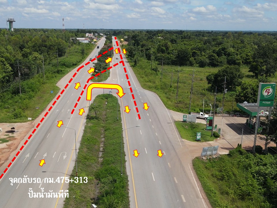 การเบี่ยงการจราจรการเดินรถในเส้นทางที่ก่อสร้าง ในทางหลวงหมายเลข 2 ตอน อุดรธานี - น้ำสวย ช่วงระหว่าง กม.472+267.000 และ กม.475+314.500 (จุดกลับรถ-จุดกลับรถ)