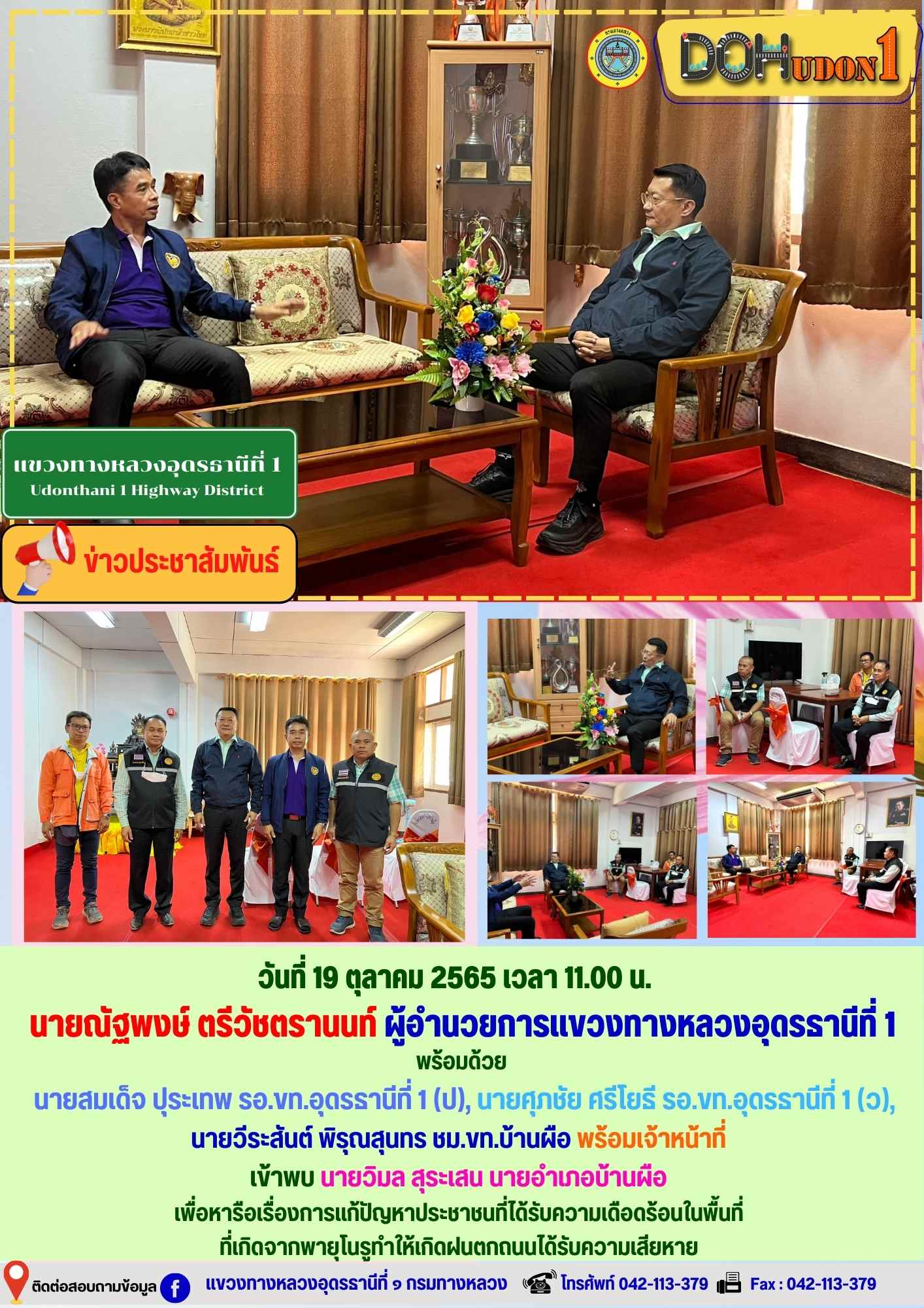 นายณัฐพงษ์ ตรีวัชตรานนท์ ผู้อำนวยการแขวงทางหลวงอุดรธานีที่ 1 ข้าพบ นายวิมล สุระเสน นายอำเภอบ้านผือ