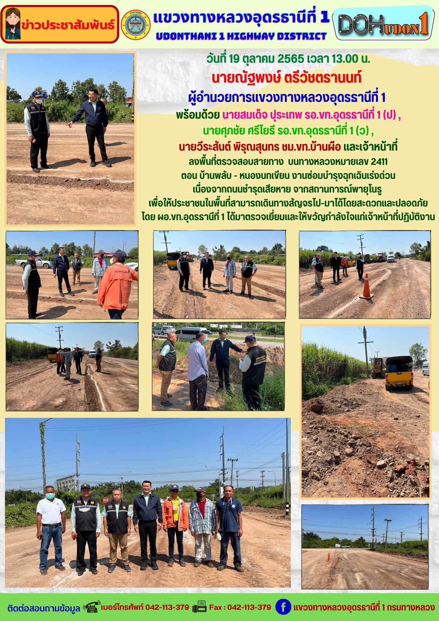 นายณัฐพงษ์ ตรีวัชตรานนท์ ผู้อำนวยการแขวงทางหลวงอุดรธานีที่ 1 ลงพื้นที่ตรวจสอบสายทาง บนทางหลวงหมายเลข 2411 ตอน บ้านพลับ - หนองนกเขียน