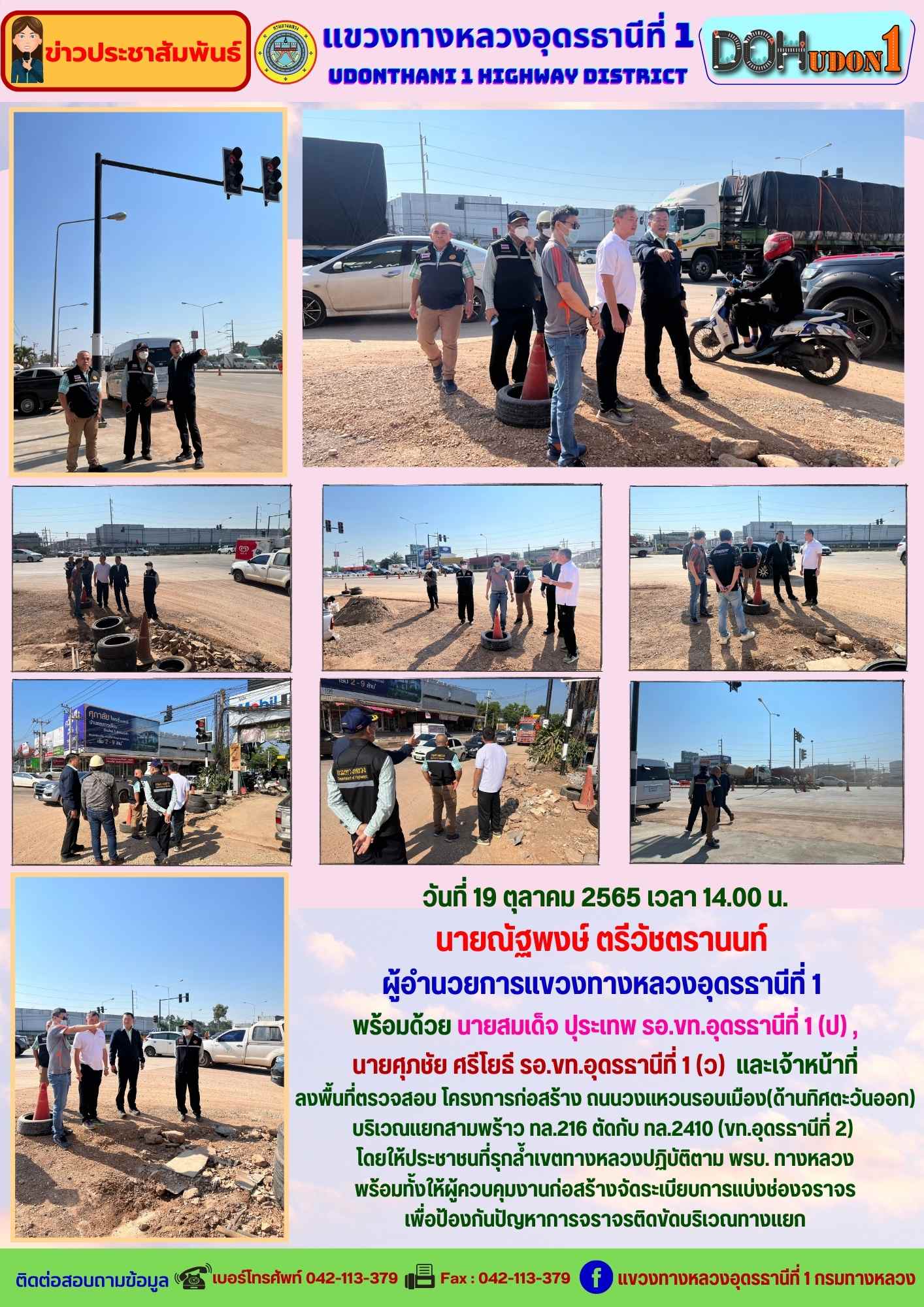 นายณัฐพงษ์ ตรีวัชตรานนท์ ผู้อำนวยการแขวงทางหลวงอุดรธานีที่ 1 ลงพื้นที่ตรวจสอบ โครงการก่อสร้าง ถนนวงแหวนรอบเมือง(ด้านทิศตะวันออก) บริเวณแยกสามพร้าว ทล.216 ตัดกับ ทล.2410 (ขท.อุดรธานีที่ 2)