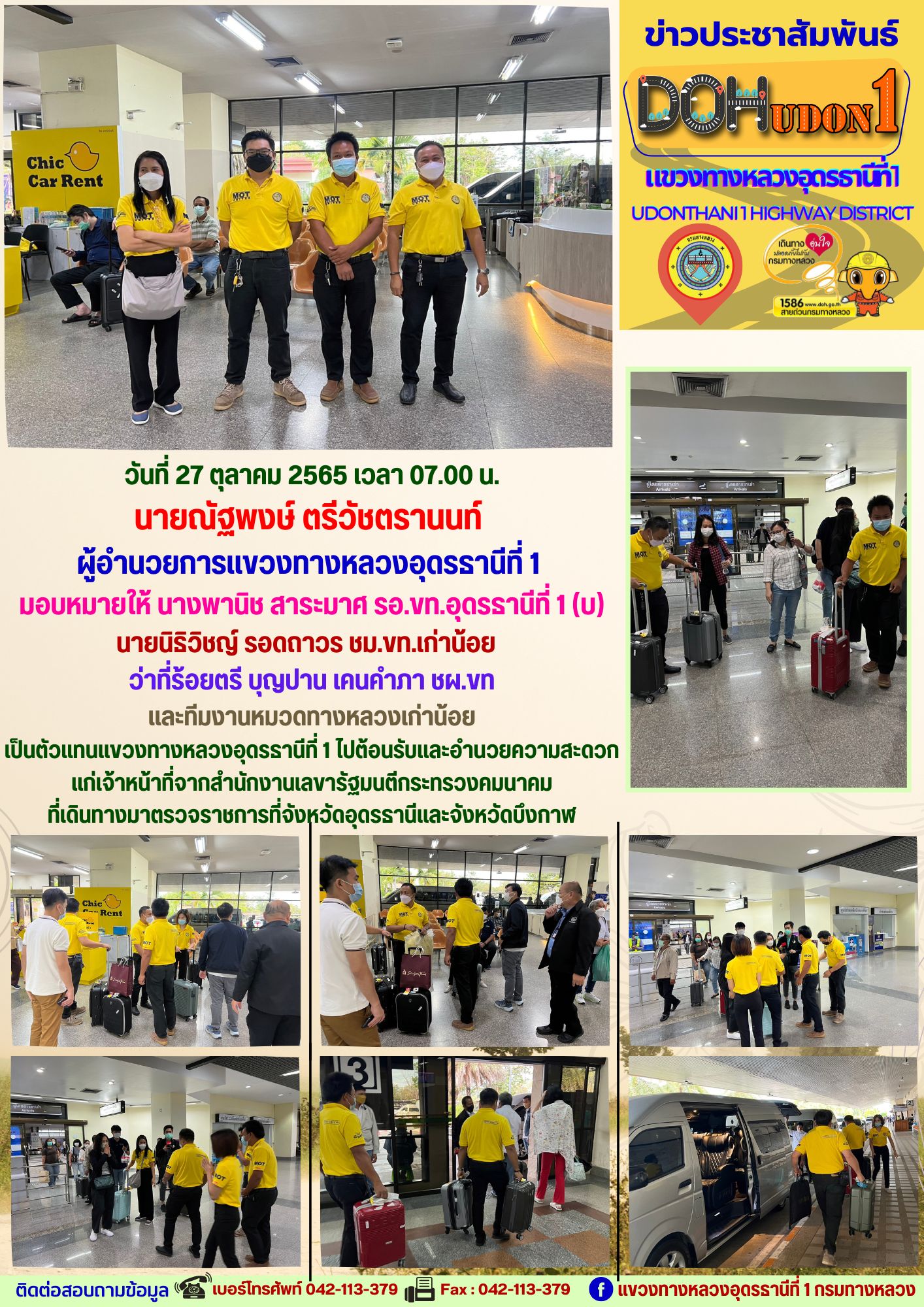 นายณัฐพงษ์ ตรีวัชตรานนท์ ผู้อำนวยการแขวงทางหลวงอุดรธานีที่ 1 และทีมงานแขวงทางหลวงอุดรธานีที่ 1 ได้ให้การต้อนรับ นายสราวุธ ทรงศิวิไล อธิบดีกรมทางหลวง ที่เดินทางมาราชการจังหวัดอุดรธานี และจังหวัดบึงกาฬ