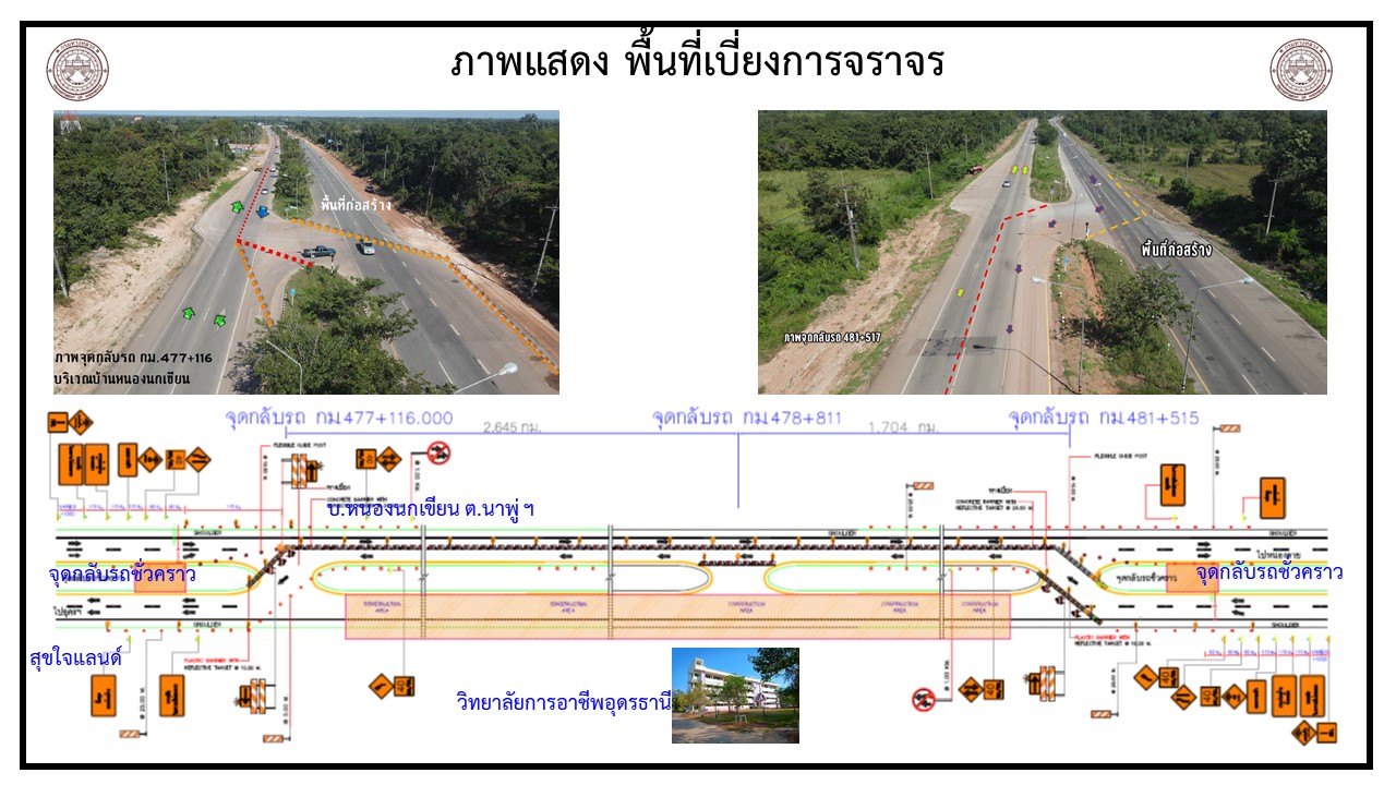 โครงการก่อสร้างทางหลวงหมายเลข 2 สายอุดรธานี – อำเภอสระใคร จะทำการเบี่ยงการจราจรและปิดจุดกลับรถ เพื่อการก่อสร้าง CONCRETE PAVEMENT บนคันทางเดิมรวมทั้งส่วนขยาย