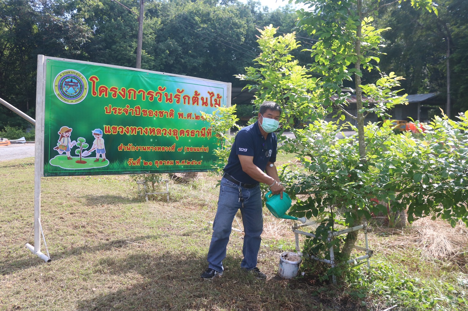 วันที่ 21 ตุลาคม 2564 เวลา 09.30 น. นายเอนก สุวรรณภูเต ผู้อำนวยการแขวงทางหลวงอุดรธานีที่ 1 พร้อมด้วยรองผู้อำนวยการ ข้าราชการ พนักงานราชการ และเจ้าหน้าที่ในสังกัดแขวงทางหลวงอุดรธานีที่ 1 ร่วมโครงการวันรักต้นไม้ประจำปีของชาติ พ.ศ.2564 โดยร่วมกันจัดกิจกรรมบำรุงรักษาต้นไม้ด้วยการพรวนดิน ใส่ปุ๋ย กำจัดวัชพืช โรค แมลง ตัดแต่งกิ่งไม้ และรดน้ำ ณ บริเวณหมวดทางหลวงนิคมสงเคราะห์ ทางหลวงหมายเลข 210 ตอน อุดรธานี-นิคมเชียงพิณ ที่ กม.8+417