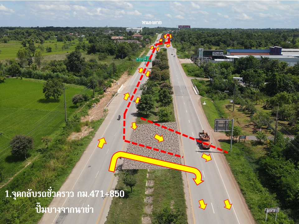 กำหนดให้รถวิ่งสวนทางกันในทิศทางขาเข้าจังหวัดอุดรธานี