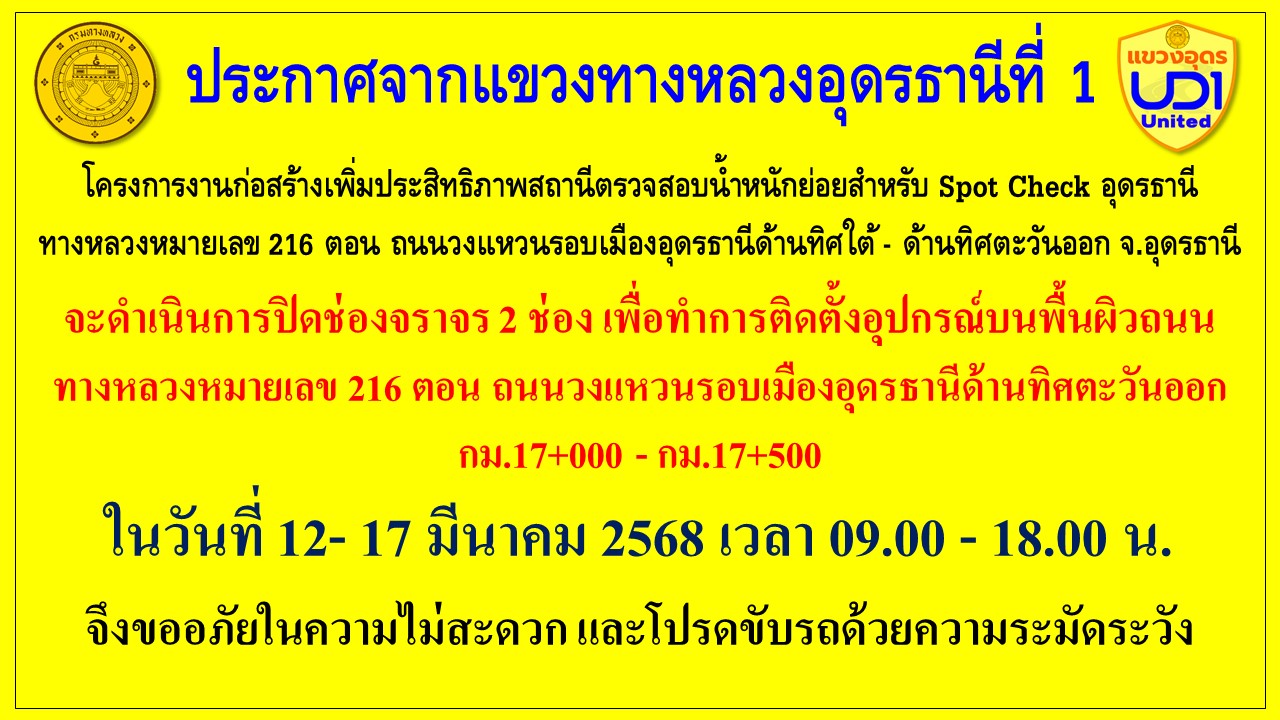 ประกาศจากแขวงทางหลวงอุดรธานีที่ 1